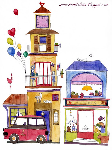 Wracając natomiast do tematu postępów w rysowaniu najmłodszych jestem w nieustającym szoku, jest coraz lepiej. Dzisiaj powstało niebanalne dzieło "Ryś w wysokiej trawie i kwiatach". W dodatku panna podczas twórczości tak się zmęczyła, że zjadła zupę pomidorową co jest wyczynem na miarę zdobycia Mount Everest przez niechodzącego, po czym poprawiła pierogami w Misiance :) Przemiły spacer był zwieńczeniem dzisiejszego leniwego dnia. Nareszcie w Skaryszaku powróciła Kawa na Molo, rozpogodziło się i tylko tabuny policji zastawiające alejki parkowe nie za bardzo wpisywały się w klimat tego sielskiego popołudnia. Jak ja lubię się nachodzić :)